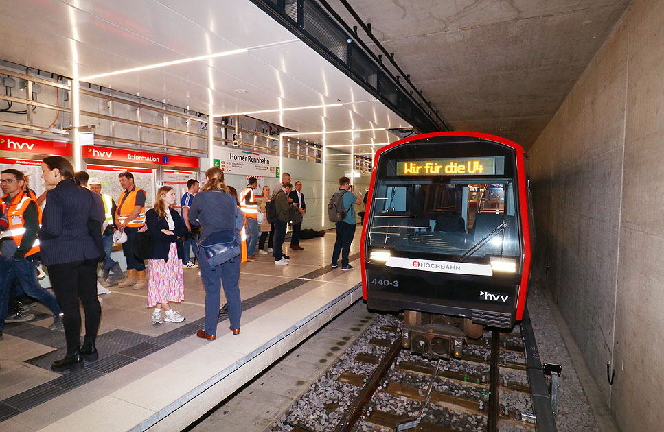 | Lars Brüggemann, Hamburg Hamburger Hochbahn: Ausfädelungshaltestelle für U-Bahn in die Horner Geest fertig Am 3. Mai 2024 feierte die Hamburger Hochbahn mit Gästen die Fertigstellung vom Ausfädelungsbahnsteig der Haltestelle Horner Rennbahn für die Neubaustrecke in die Horner Geest. Am 6. Mai 2024 ging der neue Bahnsteig in den Fahrgastbetrieb. Die Neubaustrecke in die Horner Geest wird nach Beendigung des Gesamtprojektes von hier aus in einem Bogen etwa 400 Meter hinter der Haltestelle ausgefädelt und wird unter der Billstedter Strecke hindurchgeführt. Die Neubaustrecke führt in Richtung Nordosten zu den neuen, derzeit im Bau befindlichen Haltestellen Stoltenstraße und Horner Geest. Die Linie U2 kann seit Montag, 6. Mai 2024, nach einer rund einjährigen Sperrung zwischen den Haltestellen Rauhes Haus und Billstedt wieder von der Innenstadt bis Mümmelmannsberg fahren. Während der aktuellen Bauphase müssen die Fahrgäste zur Weiterfahrt aber an der Haltestelle Horner Rennbahn umsteigen und vom einem zum anderen Bahnsteigtunnel wechseln. Die jetzt eröffnete Haltestelle liegt südlich der seit 1967 bestehenden Haltestelle Horner Rennbahn. Über den neu gebauten Bahnsteig werden die Züge der U2 und U4 stadtauswärts fahren. Die nördliche Bestandshaltestelle mit zwei Gleisen nimmt die stadteinwärts fahrenden U2- und U4-Züge auf. Westlich der Haltestelle fädelt die U4 dann auf die bestehende U2-Strecke ein. In den vergangenen Monaten wurden sämtliche U-Bahn-Tunnel rund um die Haltestelle Horner Rennbahn abgerissen. Im Anschluss wurden die neuen Tunnel sowie das notwendige U2/U4-Kreuzungsbauwerk gebaut. Der Bau des Kreuzungsbauwerks, das noch in diesem Jahr als Rohbau fertiggestellt wird, war der wesentliche Grund für die einjährige Streckensperrung. Mit der Verlängerung der U4 auf die Horner Geest erhalten rund 13.000 Anwohner erstmals einen fußläufigen Anschluss an das U-Bahn-Netz. Ab Ende 2026 sollen die Fahrgäste von der Horner Geest in 13 Minuten die Hamburger Innenstadt erreichen können. Rund 24.000 Fahrgäste täglich, werden nach Berechnungen der Hochbahn die neue Strecke nutzen. Auch im zweiten Bauabschnitt der U4 Horner Geest laufen die Bauarbeiten auf Hochtouren. Dazu gehört der Bau der Tunnelstrecke sowie der beiden künftigen U4-Haltestellen. Die Haltestelle Horner Geest befindet sich im Rohbau. In Kürze startet dieser auch an der Haltestelle Stoltenstraße. Anjes Tjarks, Hamburgs Senator für Verkehrs- und Mobilitätswende sagte: „Mein Dank gilt der Hochbahn, die sowohl Neubau als auch Schienenersatzverkehr gut organisiert hat, sowie den unmittelbaren Anwohnenden, die die Maßnahme mitgetragen haben. Ebenso möchte ich den vielen Menschen im Hamburger Osten danken, die auf dieser stark genutzten Achse in der Zeit des Umbaus Busse statt Bahnen genutzt haben. Sie alle werden künftig belohnt mit zwei neuen, fußläufig gut erreichbaren Haltestellen, einer schnelleren U-Bahn-Taktung und so mit einer noch besseren Anbindung an die Innenstadt. Mit der U4 wird sich ihre Fahrzeit von der Horner Geest bis in die Hamburger Innenstadt nahezu halbieren. Mehr noch: An der Horner Rennbahn entsteht ein Mobilitätsknotenpunkt für den Hamburger Osten, an dem die Hornerinnen und Horner ein vielfältiges Mobilitätsangebot erhalten von der U-Bahn über zahlreiche Buslinien bis hin zu einem hvv switch-Punkt und einer Bike and Ride-Station. So wird ein ganzer Stadtteil aufgewertet, noch mobiler gemacht, und die Mobilitätswende erhält im Hamburger Osten einen richtigen Schub.“ |