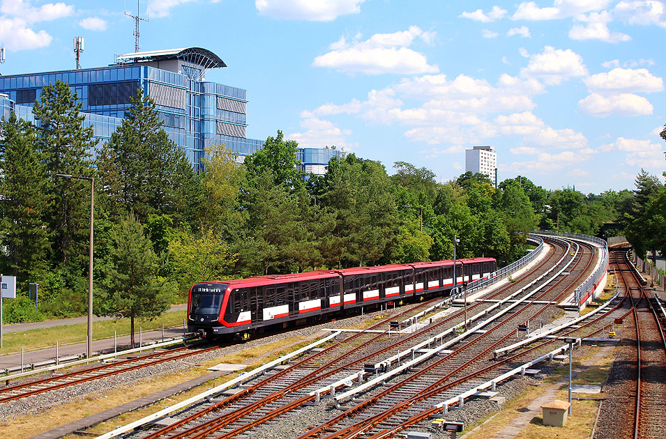 Elektromobilität in Nürnberg: Der VAG 773 kommt auf der Fahrt nach Langwasser Süd in die U-Bahn-Haltestellte Langwasser Nord als Linie U1 eingefahren. Bei diesem U-Bahn-Wagen handelt es sich um einen DT3-F, diese gleichen dem selbstfahrenden DT3 nur können die DT3-F von Fahrern vom Fahrerstand gefahren werden. Die DT3 haben nur Notfahrpulte. Digi Foto: IMG_4850.JPG Digi Fotos 0298 (D4/D7/diakasten18) Foto: Lars Brüggemann |