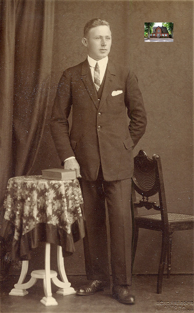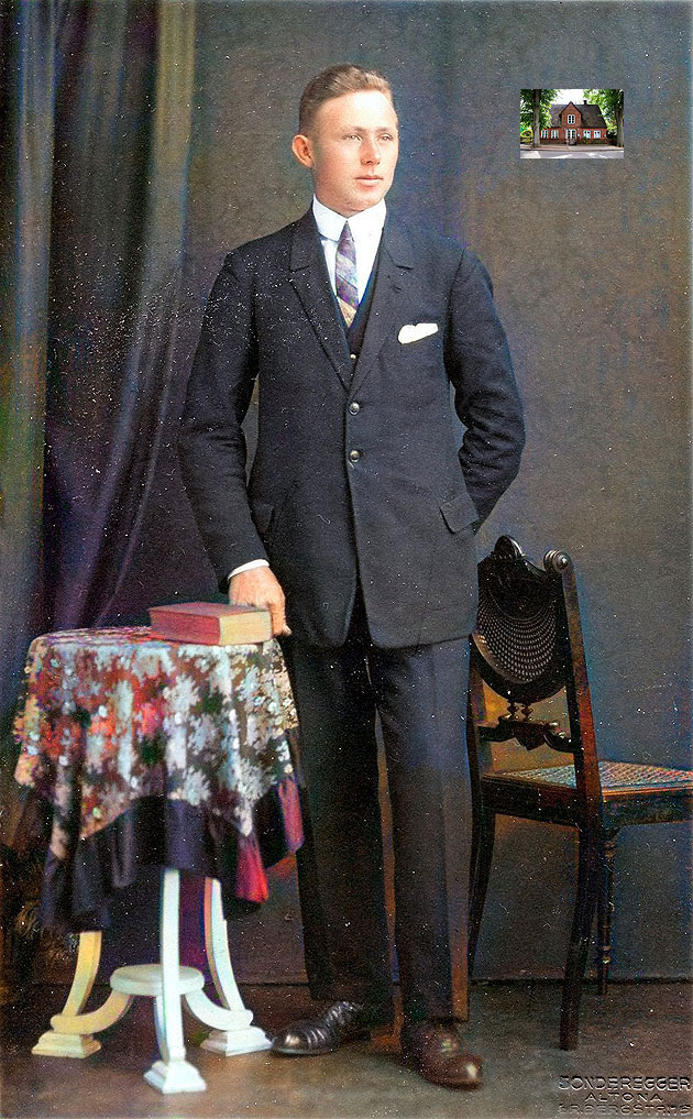 Dieses Foto müsste meinen Großvater Heinrich Brüggemann aus Sülldorf zeigen. Das Foto rechts ist nachcoloriert. Aufgenommen wurde das Foto bei Sonderegger in Altona in der Großen Bergstraße 16. Scans FP10 |