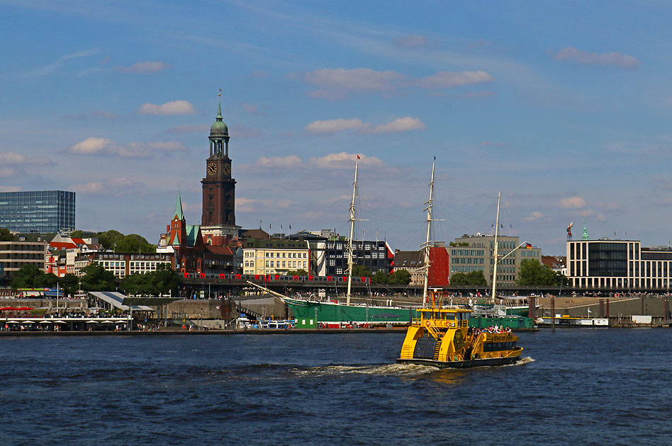 Das Hamburger HADAG-Schiff Tollerort auf der Elbe in Fahrtrichtung St. Pauli Landungsbrücken. Links oben im Bild das Columbus Haus und rechts oben die Elbphilharmonie. Die Tollerort wurde im Jahr 2006 in Dienst gestellt und von der SSB Spezialschiffbau Ooortkaten gebaut. Die HADAG ist ein öffentliches Verkehrsmittel im HVV (Hamburger Verkehrsverbund) und wickelt den Fährverkehr im Hamburger Hafen und auf der Elbe in Hamburg ab. Die HADAG wurde 1888 als Reederei mit dem Namen: "Hafendampfschiffahrts-Actien-Gesellschaft" gegründet. Digi Foto: IMG_9703.JPG Digi Fotos: 0374, FP10 (D25/D11/#+24) Foto: Lars Brüggemann |