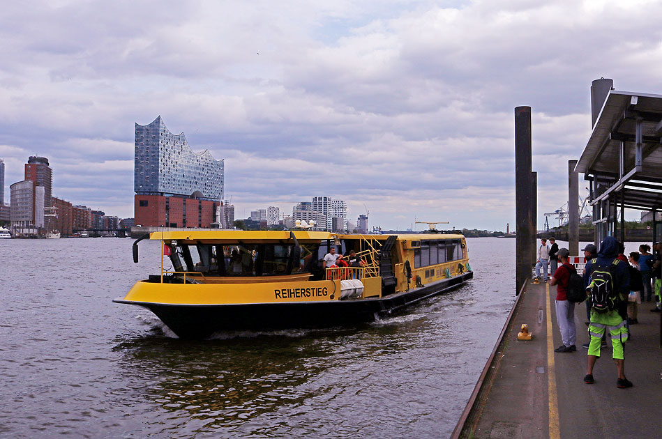 Das HADAG Schiff Reiherstieg in der Bildmitte legt gleich am Anleger Theater im Hafen an. Links oben, die Elbphilharmonie. Die HADAG ist ein öffentliches Verkehrsmittel im HVV (Hamburger Verkehrsverbund) und wickelt den Fährverkehr im Hamburger Hafen und auf der Elbe in Hamburg ab. Die HADAG wurde 1888 als Reederei mit dem Namen: "Hafendampfschiffahrts-Actien-Gesellschaft" gegründet. Digi Foto: IMG_4728.JPG Digi Fotos: 0371, FP10 (D23/D8/#+24) Foto: Lars Brüggemann |