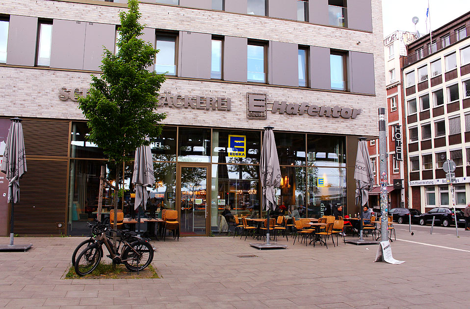 Fast direkt an den St. Pauli Landungsbrücken in Hamburg im Portugiesenviertel gibt es einen Edeka. Die Postanschrift von dem "Frischemarkt Hafentor" ist Hafentor 7. Diesen Edeka findet man zwischen den U-Bahn und S-Bahn Eingängen im Hafentor gegenüber vom westlichen Ende der Jan-Fedder-Promenade. In dem Edeka ist dazu eine Schanzenbäckerei. Digi Foto: IMG_7643.JPG Digi Fotos 0374, FP10 (D4/D11/#+24) Foto: Lars Brüggemann |
