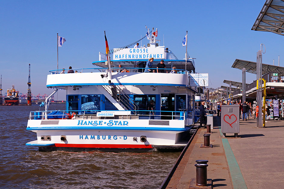 So sieht Urlaub in Hamburg aus! Die St. Pauli Landungsbrücken sind der Anziehungspunkt für Hamburg-Besucher. Das Abicht Schiff Hanse Star soll bald auf Große Hafenrundfahrt gehen. Es gibt viele verschiedene Hafenrundfahrten und eine Hafenrundfahrt sollte man als Hamburg-Besucher gemacht haben wenn man den Hafen sehen möchte. Rechts im Bild der Anleger von den Landungsbrücken. Digi Foto: IMG_0838.JPG Digi Fotos 0379, FP10 (D15/D4/#+25) Foto: Lars Brüggemann |