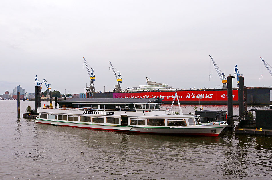 Das Fahrgastschiff Lüneburger Heide von der Personenschiffahrt Jürgen Wilcke kommt hin und wieder auch mal zum Hamburger Fischmarkt. Hier liegt die Lüneburger Heide am Anleger Altona Fischmarkt und wartet auf seine Rückfahrt der "Fischmarktfahrt" nach Artlenburg mit Zwischenhalt in Geesthacht. Digi Foto: IMG_1273.JPG Digi Fotos: 0371, FP10 (D18/D8/#+24) Foto: Lars Brüggemann Diese Seite ist ein Teil einer Online-Foto-Sammlung ähnlich einem Bildband, Sie können sich hier von Bahnhof zu Bahnhof durchklicken. Vielleicht suchen Sie aber Fotos für eine Heimatchronik, ein Fachbuch oder einen Fachartikel? Schreiben Sie mir! Email an Lars Brüggemann: mail@larsbrueggemann.de zurück zur: Startseite |
