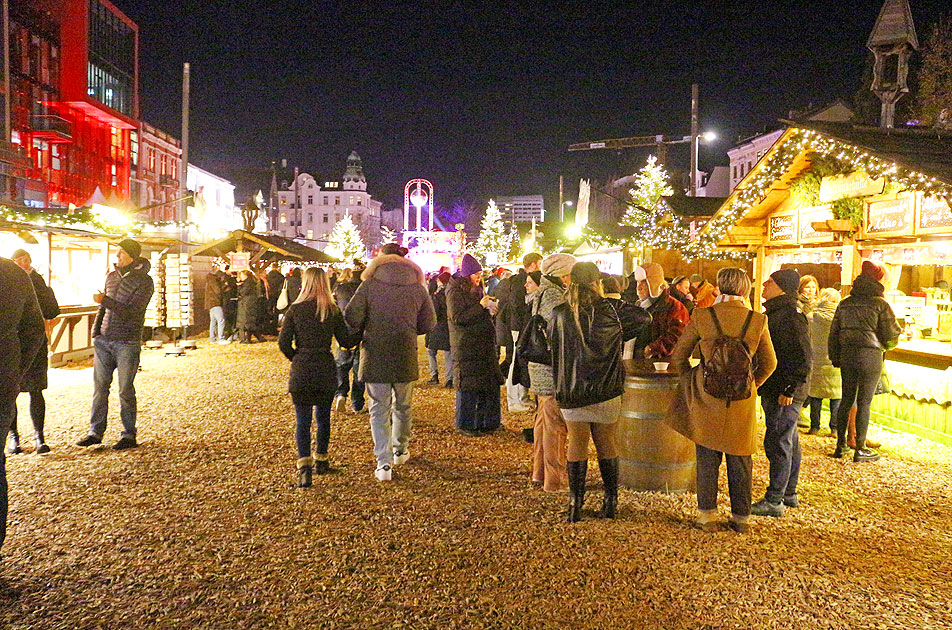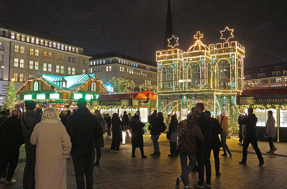 Auch an der Mönckebergstraße in der Hamburger Innenstadt gibt es einen gemütlichen Weihnachtsmarkt rund um die Petrikirche. Viele Holzhütten mit Glühwein, gebrannten Mandeln, Bratwürsten, ein Karussell. Zu kaufen gibt es Spielzeug, Kunsthandwerk. Dekoratiansartikel und was es sonst noch so alles auf dem Weihnachtsmarkt zu kaufen gibt. Noch bis zum 27. Dezember 2025 ist dieser Weihnachtsmarkt täglich von 10.30 Uhr bis 21 Uhr geöffnet. Ein großes Schaufenstertheater mit beweglichen Figuren zeigt die Weihnachtsgeschichte. Und wer hier noch nicht genug vom Weihnachtsmarkt hat, gleich nebenan sind auf dem Rathausmarkt sowie am Jungfernstieg sind die nächsten großen Weihnachtsmärkte. Zur Anreise mit der S-Bahn oder U-Bahn empfehlen sich die Bahnhöfe Jungfernstieg und Rathaus sowie mit dem Bus die Bushaltestellen Rathausmarkt, Gerhart-Hauptmann-Platz oder Spersort. Digi Foto: IMG_1770.JPG Digi Fotos: 0386, FP10 (D25/D11/+#25) Foto: Lars Brüggemann |