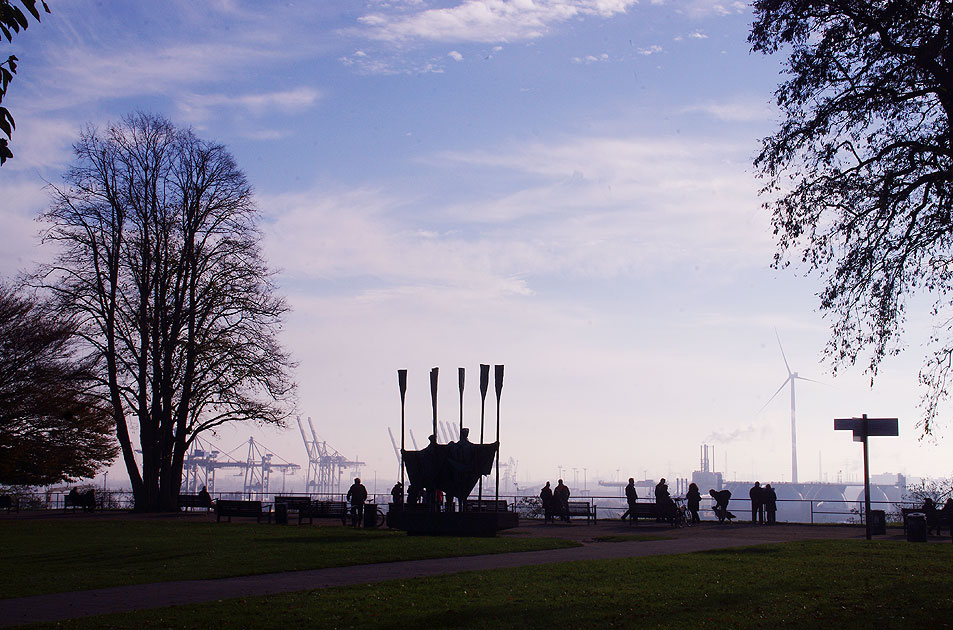 Der Altonaer Balkon ist ein kleiner Park am Neuen Altonaer Rathaus und bietet einen schönen Ausblick auf die Elbe und den Hamburger Hafen. Diese Grünanlage befindet sich in Altona-Altstadt an der Palmaille. Links im Bild die Skulptur "Fischer" aus dem Jahr 1968 von Gerhard Brandes. Digi Foto: IMGP0332.JPG Digi Fotos: 0254, FP3 (D11/D11/+#14) Foto: Lars Brüggemann Facebook-Seite Hamburg Landungsbrücken - larsbrueggemann.de |