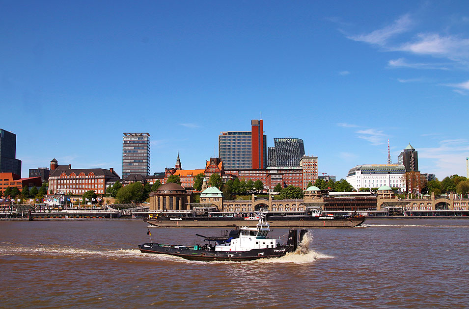 Der Schuber Vincent fährt an den St. Pauli Landungsbrücken in Richtung Osten vorbei. Der Schuber Vincent wurde 1956 gebaut und ist im Einsatz bei der Ewerführerei GmbH Walter Lauk. Im Hintergrund das Landungsbrücken-Panorama, quasi das Sinnbild für Urlaub in Hamburg. Digi Foto: IMG_3067.JPG Digi Fotos: 0320, FP8 (D6/D5/#+20) Foto: Lars Brüggemann |
