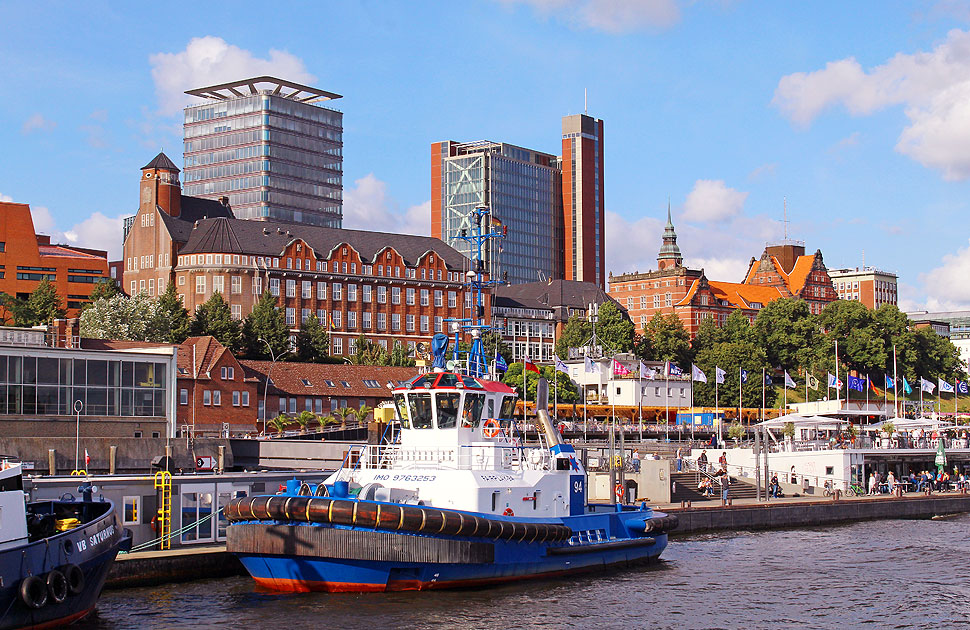Eine ganze Reihe Hafenschlepper auf der Elbe vor den St. Pauli Landungsbrücken in Hamburg. Oben in der Bildmitte der Michel, dirkekt unter dem Michel, das Eingangsgebäude vom St. Pauli Elbtunnel. Die Hafenschlepper sind im Hamburger Hafen unverzichtbar. Diese helfen großen Schiffen beim manövrieren im Hamburger Hafen. Und beim Hafengeburtstag haben die Hafenschlepper auch eine ganz besondere Aufgabe. Zum Hafengeburtstag sind die Hafenschlepper für das Schlepperballett zuständig. Beim Schlepperballett tanzen die Schlepper auf der Elbe zur Schau ein Ballett vor den Landungsbrücken. Digi Foto: IMG_1813.JPG Digi Fotos: 0370,FP10 (D24/D7/+#24) Foto: Lars Brüggemann |