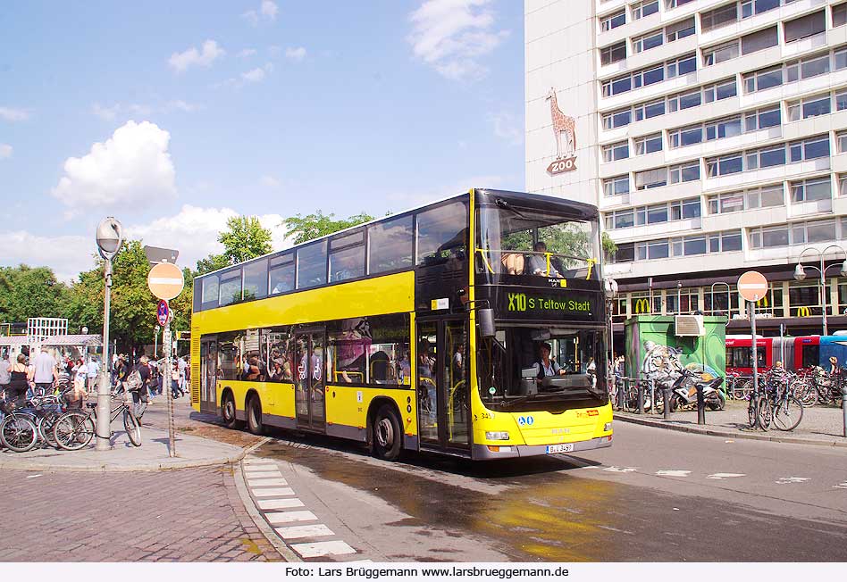 Die Doppeldeckerbusse gehöhren zu Berlin, sie sind dort geradezu ein Wahrzeichen, hier verlässt der BVG 3182, ein MAN Lion’s City A39, die Haltestelle Bahnhof Zoo als Linie X 10 nach Teltow Stadt. Dieses Foto ist noch unter anderem Dateinamen online Digi Foto: IMGP9230.JPG Digi Fotos: 0250 (D11/D7/D2014) Foto: Lars Brüggemann Fotos von der Buslinie 111 in Hamburg - klicken Sie hier |