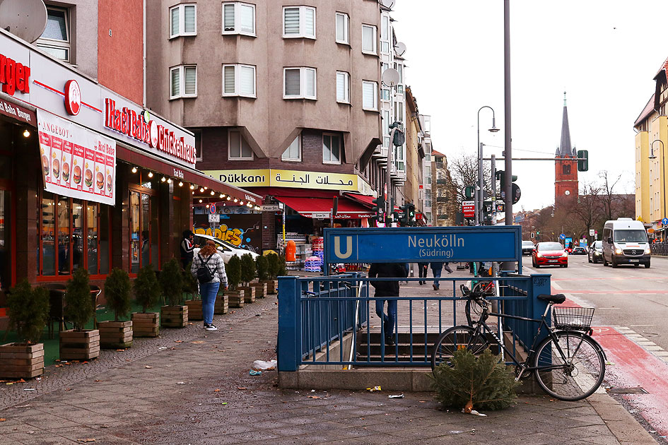 Ein Zugang zum U-Bahn-Bahnhof Neukölln der U-Bahn in Berlin. Der Bahnhof Neukölln liegt an der U7 von Rathaus Spandau nach Rudow. Der U-Bahn-Bahnhof Neukölln wurde am 21. Dezember 1930 in Betrieb genommen. Bei der Berliner-U-Bahn gibt es eine Besonderheit. Juristisch heissen die Bahnhöfe der U-Bahn nämlich Haltestellen, da die U-Bahn nach BOStrab fährt. Und nach § 31 BOStrab haben U-Bahnen nämlich Haltestellen und keine Bahnhöfe. Auch die Schreibweise "U-Bahnhof" müsste eigentlich: "U-Bahn-Bahnhof" heissen. Digi Foto: IMG_2660.JPG (D23/D1/bine24) Digi Fotos: 0364, FP10 Foto: Lars Brüggemann |