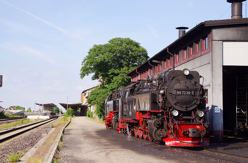 Die 99 7238-1 der Harzer Schmalspurbahnen im Bw Wernigerode, aufgenommen an einem warmen Sommertag. Digi Foto: IMGP7917.JPG Digi Fotos: 0237 (D10/D6/dampf13) Foto: Lars Brüggemann Interner Vermerk: Dieses Foto ist noch unter einem anderen Dateinamen online. |