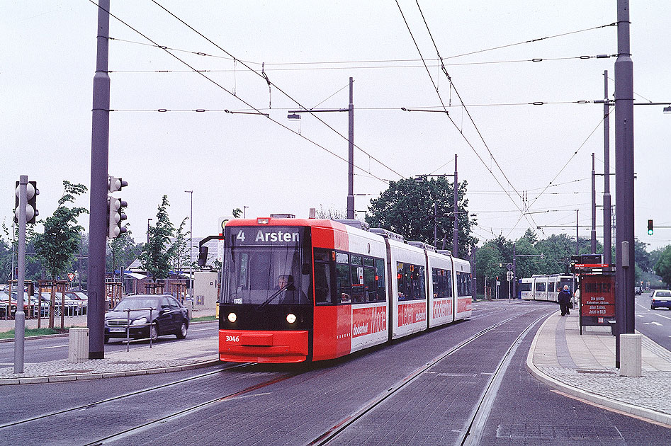 Der BSAG-Straßenbahnwagen 3046 als Linie 4 nach Arsten an der Haltestelle Bremen Borgfeld am 23. Mai 2003. Dia 20.088, FP1 BST: 1361 Foto: Lars Brüggemann Diese Seite ist ein Teil einer Online-Foto-Sammlung ähnlich einem Bildband, Sie können sich hier von Haltestelle zu Haltestelle durchklicken. Vielleicht suchen Sie aber Fotos für eine Heimatchronik, ein Fachbuch oder einen Fachartikel? Schreiben Sie mir! Email an Lars Brüggemann: mail@larsbrueggemann.de zurück zur: Startseite |
