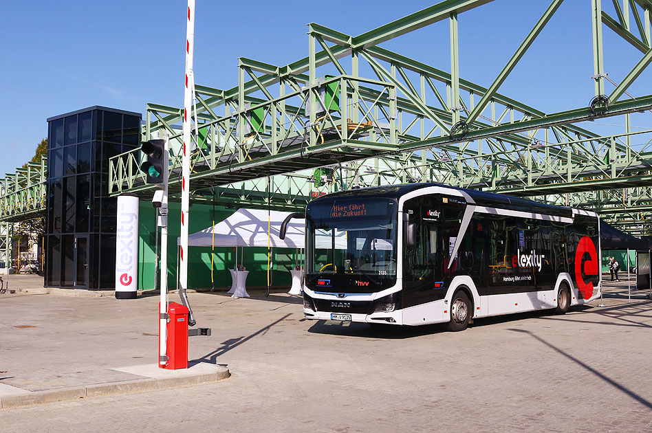 Lars Brüggemann, Themen-Nummer: 813 VHH-Betriebshof Schenefeld wird elektrisch Am 21. September 2022 hat die VHH ( Verkehrsbetriebe Hamburg-Holstein GmbH) die elektrische Ladeanlage auf ihrem Busbetriebshof in Schenefeld bei Hamburg eingeweiht. Das besondere ist hier, der Strom kommt von oben und es bedarf keiner Ladesäulen, dies spart viel Platz. An der neuen Ladeanlage sollen in Zukunft bis zu 80 Busse geladen werden können, noch befindet sich ein Teil der Ladeanlagen im Bau. Die VHH-Betriebshöfe in Hamburg-Bergedorf und in Norderstedt sind bereits mit einer Ladeinfrastruktur ausgestattet. Anders als an diesen beiden Standorten werden in Schenefeld die E-Busse nicht an Säulen geladen, sondern an Ladestecker angeschlossen, die von oben herabhängen. Das ermöglicht das Laden von mehr Fahrzeugen auf einer vergleichsweise kleineren Fläche. Jeder einzelne Bus kann mit einer Maximalleistung von 150kW geladen werden. Die Versorgung wird durch Transformatoren im neu errichteten Technikgebäude und eine installierte Übergabestation sichergestellt. Noch sind es nur 15 Elektrobusse in Schenefeld, später werden es 80 sein. Die Elektrobusse vom Betriebshof Schenefeld werden schwerpunktmäßig auf den Linien 1, 22, 281, 186, 286 und 384 (Solobusse) sowie den Linien X3, 2, 3 und 21 (Gelenkbusse) unterwegs sein. Insgesamt investiert die VHH rund 17,5 Millionen Euro in die neue Ladeinfrastruktur. Gefördert wird das Vorhaben mit Mitteln aus dem Bundesministerium für Wirtschaft und Klimaschutz (BMWK) und dem Bundesministerium für Digitales und Verkehr (BMDV). Dazu soll der gesamte Busbetriebshof für Elektrobusse umgerüstet werden, wie die Werkstatt. Anjes Tjarks, Senator für Verkehr und Mobilitätswende Hamburg sagte: „Zu einer nachhaltigen Mobilitätswende gehört auch zwingend eine Antriebswende. Denn es ist klar, dass wir die Fahrleistung von Verbrennern substanziell reduzieren müssen, um unsere Klimaziele erreichen zu können. Hamburg macht deshalb Tempo bei der Elektrifizierung des ÖPNV. Bis 2030 wollen wir alle Dieselbusse auf lokal emissionsfreie Antriebe umgestellt haben. Mobilitäts- und Antriebswende machen aber nicht an der Stadtgrenze Halt, auch die Menschen in der Metropolregion sowie die vielen Pendlerinnen und Pendler sollen profitieren: Die neue Ladeinfrastruktur in Schenefeld sowie die neuen E-Busse der VHH bedeuten für die Fahrgäste im Kreis Pinneberg und im Westen der Stadt weniger Lärm, bessere Luft und mehr Fahrkomfort im ÖPNV durch leise, komfortable, nachhaltige sowie gleichzeitig leistungsfähige Technik, die mit Ökostrom betrieben wird. Das zahlt auf die Mobilitäts- und Antriebswende sowie die Klimaziele Hamburgs und des Umlands gleichermaßen ein." Die VHH haben bereits Pläne für die Zukunft: Der Betriebshof in Hamburg-Billbrook soll als nächster Betriebshof für Elektrobusse umgerüstet werden. |