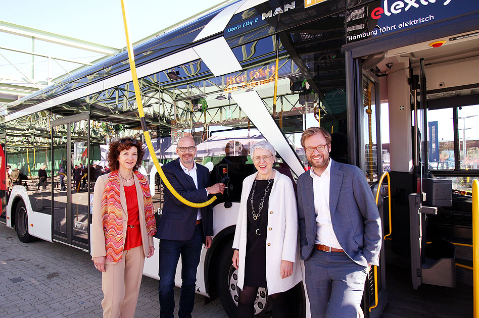 Die VHH weihte am 21. September 2022 auf dem Betriebshof in Schenefeld (westlich angrenzend an Hamburg) die Ladeinfrastruktur und Ladeanlage für Elektrobusse ein. Auf dem Foto stehen als Ehrengäste und Ehrengastgeber von links nach rechts: Landrätin des Kreises Pinneberg, Elfi Heesch, Senator für Verkehr und Mobilitätswende der Freien und Hansestadt Hamburg, Dr. Anjes Tjarks, VHH-Geschäftsführer Toralf Müller, HVV-Geschäftsführer, Dietrich Hartmann und VHH-Geschäftsführerin, Nora Wolters. Digi Foto: IMG_2042.JPG Digi Fotos: 0348 Foto: Lars Brüggemann Diese Seite ist ein Teil einer Online-Foto-Sammlung ähnlich einem Bildband, Sie können sich hier von Seite zu Seite durchklicken. Vielleicht suchen Sie aber Fotos für eine Heimatchronik, ein Fachbuch oder einen Fachartikel? Schreiben Sie mir! Email an Lars Brüggemann: mail@larsbrueggemann.de Dieses Angebot richtet sich nicht an bildersammelnde Eisenbahnfreunde zur kostenlosen Zusendung (für "private Zwecke"). Ebenso bitte ich um Verständnis das ich als Journalist keine kostenlosen Fotos für Veröffentlichungen anbiete (selbst bei so verheißungsvollen Angeboten wie: "selbstverständlich schreiben wir auch Ihren Namen dazu"). Ebenso biete ich keinen Versand von Originaldateien weder kostenlos noch gegen Bezahlung für Privatpersonen an, dieses Angebot beschränkt sich marktüblich auf den journalistischen Bereich. zurück zur: Startseite |