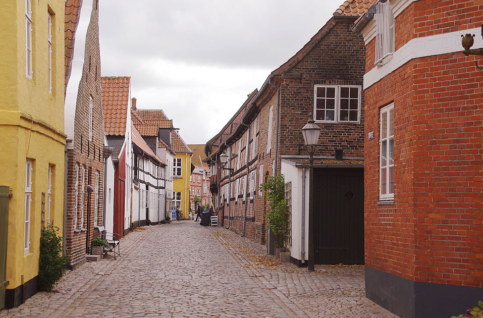 Eine Straße in der historischen Altstadt der dänischen Stadt Ribe. Im Mittelalter und in der frühen Neuzeit war Ribe der wichtigste dänische Hafen an der Nordsee. Heute ist die Stadt Ribe eine besonders sehenswerte Stadt in Dänemark. In der Nähe von Ribe befindet sich das Ribe Viking-Center, ein nachgestelltes Wikingerdorf als Freilichtmuseum. Ribe ist etwa 240 Kilometer von Hamburg entfernt und ist auch von Hamburg mit der Bahn mit Umsteigen in Niebüll erreichbar. Digi Foto: IMGP2870.JPG Digi Fotos: 0275, FP5 (D22/D8/#16) Foto: Lars Brüggemann |