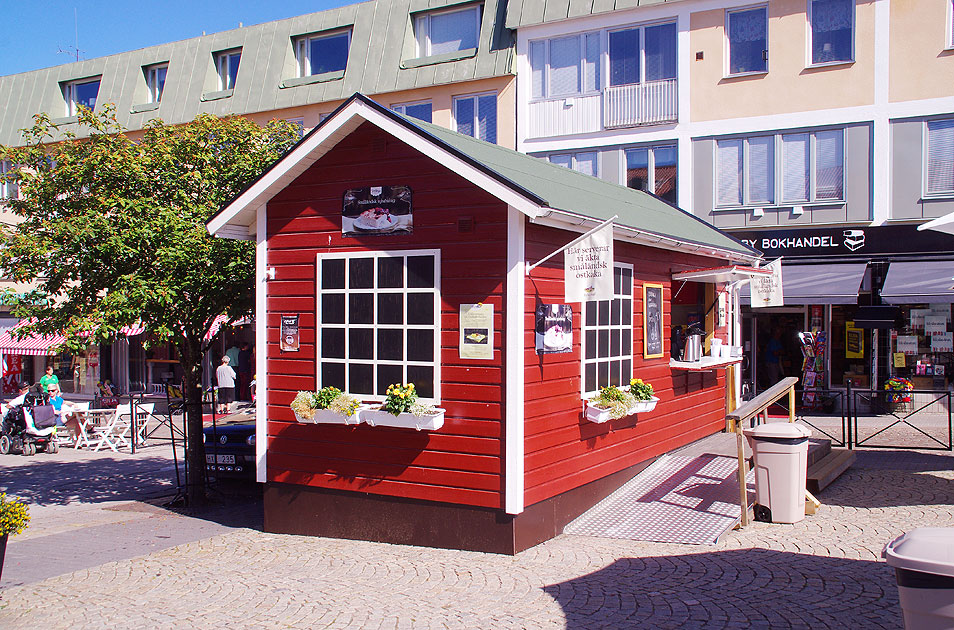 Eine Holzbude in Vimmerby, im Hintergrund die Stora Torget. Digi Foto: IMGP8525.JPG Digi Fotos: 0263 (D22/D8/D2015), FP3 Foto: Lars Brüggemann |