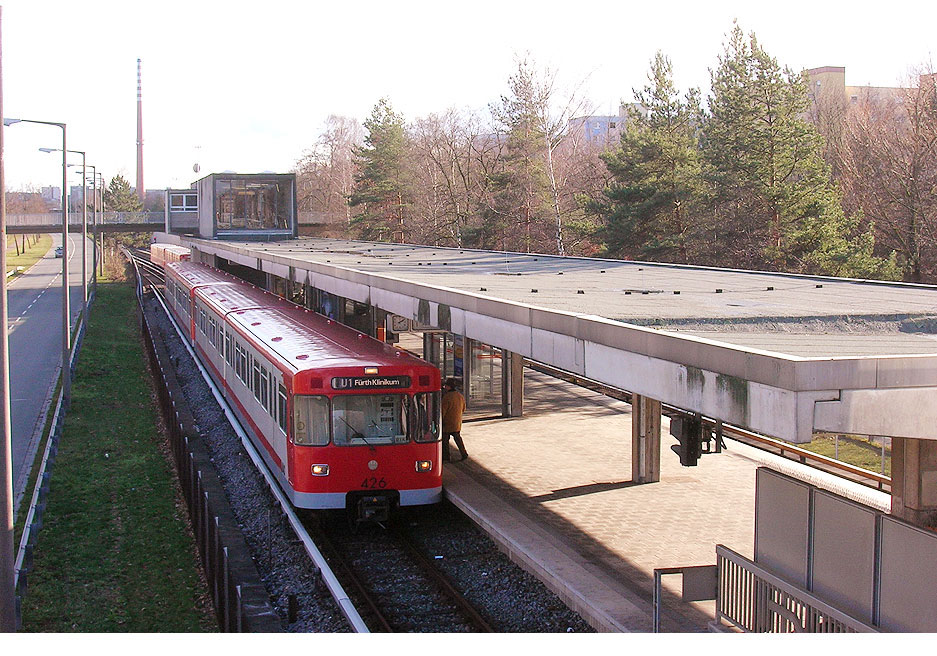Bei U-Bahn in Nürnberg hält der weiß-blaue MVG 7108/6108 an der Spitze als Linie U1 nach Fürth Klinikum an der Haltestelle Langwasser Nord. Diese U-Bahn waren mit weiteren Wagen vom Typ A von 2006 bis 2008 von München nach Nürnberg ausgeliehen. Da die Münchener und Nürnberger U-Bahn-Netze und Fahrzeuge kompatibel sind, war dieser Gasteinsatz möglich. Digi Foto: DSCN1087.JPG CD Digi Fotos: 0049 (D9/D2/D2007) Foto: Lars Brüggemann Interner Vermerk: Dieses Foto ist noch unter einem anderen Dateinamen online. |