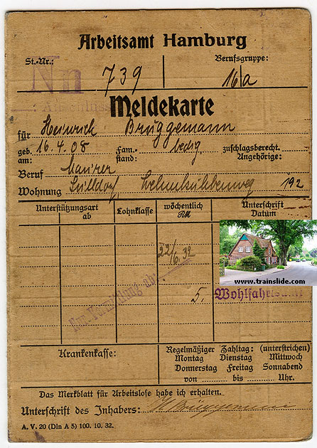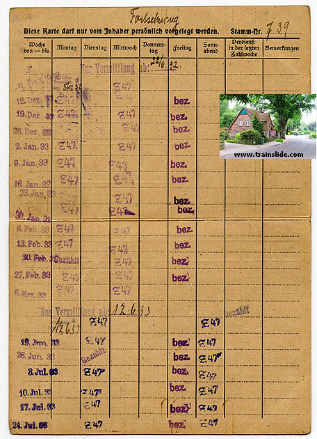Eine Stempelkarte von meinem Großvater aus Sülldorf von 1933. Scans FP10 |
