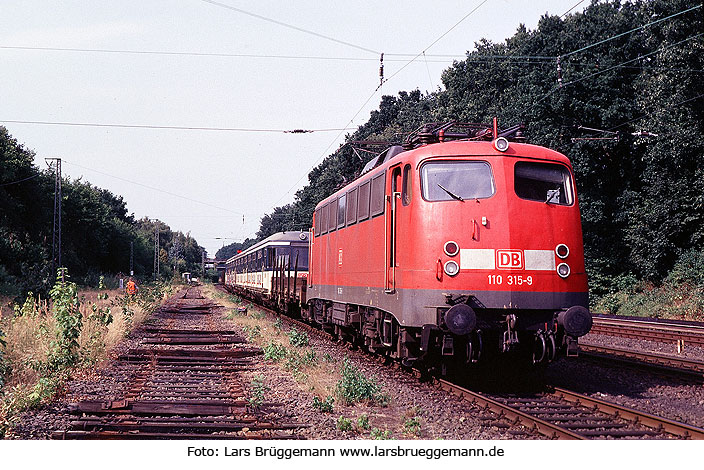 Die 110 315 mit 470 102 in Hamburg auf der Güterumgehungsbahn zwischen Rübenkamp und Alte Wöhr am 12. August 2003. Dia Foto: Lars Brüggemann |