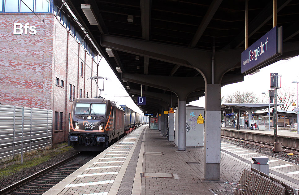 Durch den Bahnhof Hamburg-Bergedorf fährt die HSL 187 536 (HSL Logistik GmbH) mit einem Güterzug. Die 187 536-8, eine TRAXX F140 AC3, wurde im Januar 2018 an HSL von Bombardier mit der Fabriknummer: 35442 geliefert. Digitalfoto: IMG_2561.JPG Digi Fotos: 0341 (D2/D2/anna22) Foto: Lars Brüggemann Interner Vermerk: Dieses Foto ist noch unter einem anderen Dateinamen online. |