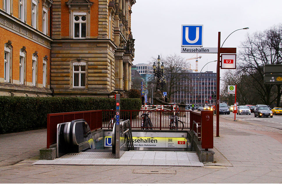 Einer der Eingänge zur U-Bahn-Haltestelle Messehallen am Sievekingplatz, aufgenommen am 13. März 2018. Digi Foto: IMG_0141.JPG Digi Fotos: 0294 Foto: Lars Brüggemann |