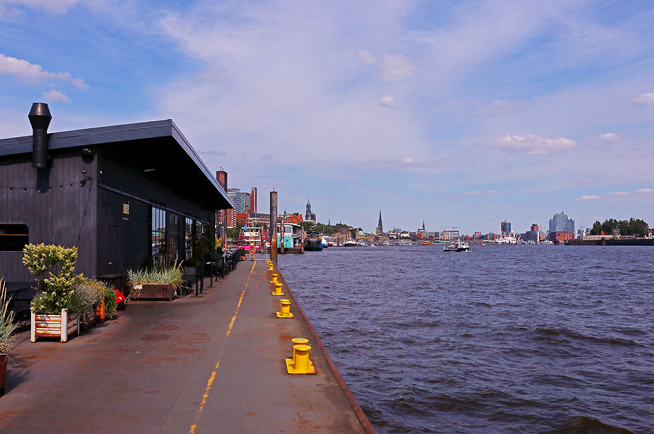 Vom Anleger Altona Fischmarkt kann schon den nächsten Anleger Landungsbrücken sehen und natürlich den Michel und die Elbphilharmonie. Von hier aus fahren HADAG-Schiffe zu den St. Pauli Ladungsbrücken, nach Finkenwerder und nach Neuhof. Links im Bild das Bistro, Bar und Cafe mit dem Namen Liberte, wie man sieht, direkt auf dem Anleger. Digi Foto: IMG_2241.JPG Digi Fotos: 0370, FP10 (D15/D7/+#24) Foto: Lars Brüggemann |