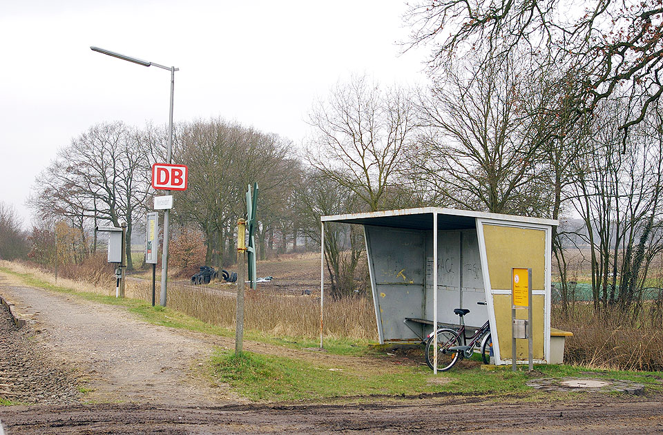 Die Zufahrtsstraße zum Bahnhof Neetzendorf mit dem Bahnhsteig und Wartehäuschen, aufgenommen am 16. März 2009. Der Bahnhof Neetzendorf liegt an der Wendlandbahn von Lüneburg West nach Dannenberg Ost (bis 1945 Dömitz, Wittenberge und Ludwigslust). Digitalfoto: IMGP0118.JPG Digi Fotos: 0186 Foto: Lars Brüggemann |