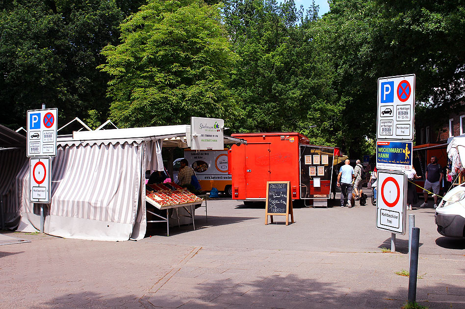 Tipp für Hamburger und Hamburg-Besucher: Es muss nicht immer der Isemarkt sein, Hamburg hat noch viel mehr Wochenmärkte. Der Wochenmarkt Hamm gegenüber der Hammer Kirche findet dienstags von 15 bis 18.30 und freitags von 12.30 bis 18 Uhr statt. Das Besondere an diesem Markt ist das er im Grünen am Rande und im Hammer Park in der Straße Bei der Vogelstange stattinfindet. Der Markt selbst ist etwas kleiner und übersichtlich. Aber wer hier kein Obst und Gemüse kaufen möchte, man kann hier auch am Imbiss etwas essen und trinken. Zu erreichen ist der Markt mit der U-Bahn bis Hammer Kirche oder mit dem Bus bis: "Beim Hammer Marktplatz". Digi Foto: IMG_8882.JPG Digi Fotos: 0382, FP10 (D4/D7/#+25) Foto: Lars Brüggemann |