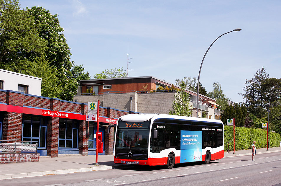 Mit Elektromobilität durch Hamburg: Der Hochbahn 2121, ein Evobus vom Typ Ecitaro, an der Haltestelle S-Bahn-Bahnhof Wellingsbüttel. Digi Foto: IMG_7422.JPG Digi Fotos 0344 (D16/D5/#+22) Foto: Lars Brüggemann Interner Vermerk: Dieses Foto ist noch unter einem anderen Dateinamen online. |