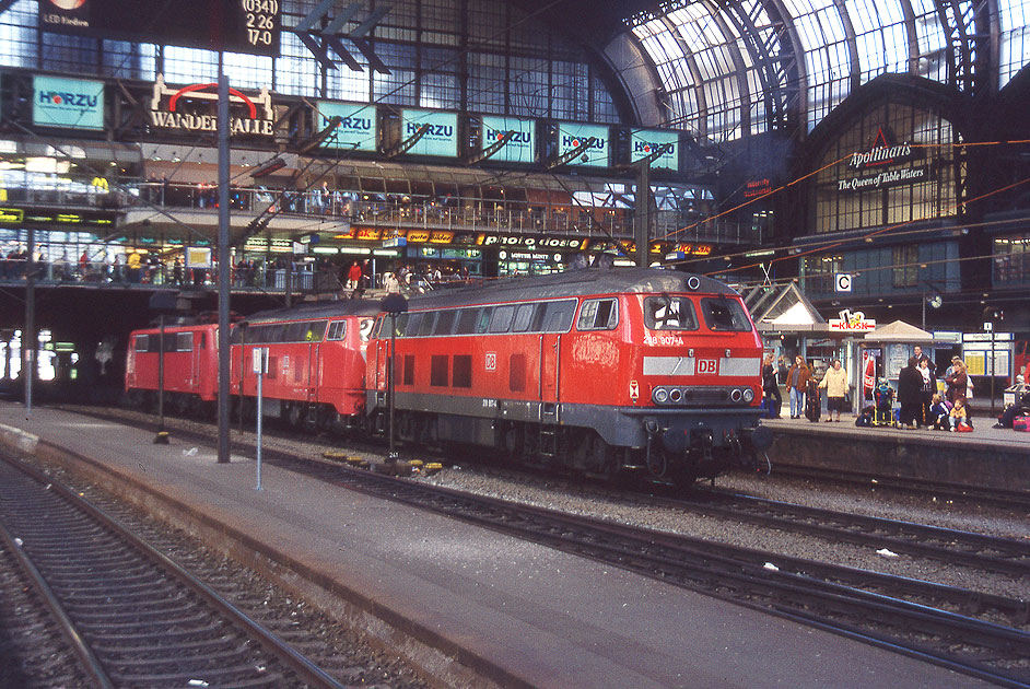 Am 18. Mai 1999 stand dieser Lokzug im Hamburger Hbf: Die 218 907-4, 218 272-3 und 111 090-7 stehen auf Gleis 9 in der Bahnhofs halle. Dia U 27.088 FP8 Foto: Lars Brüggemann Interner Vermerk: Dieses Foto ist noch unter einem anderen Dateinamen online. Diese Seite ist ein Teil einer Online-Foto-Sammlung ähnlich einem Bildband, Sie können sich hier von Bahnhof zu Bahnhof durchklicken. Vielleicht suchen Sie aber Fotos für eine Heimatchronik, ein Fachbuch oder einen Fachartikel? Schreiben Sie mir! Email an Lars Brüggemann: mail@larsbrueggemann.de zurück zur: Startseite |