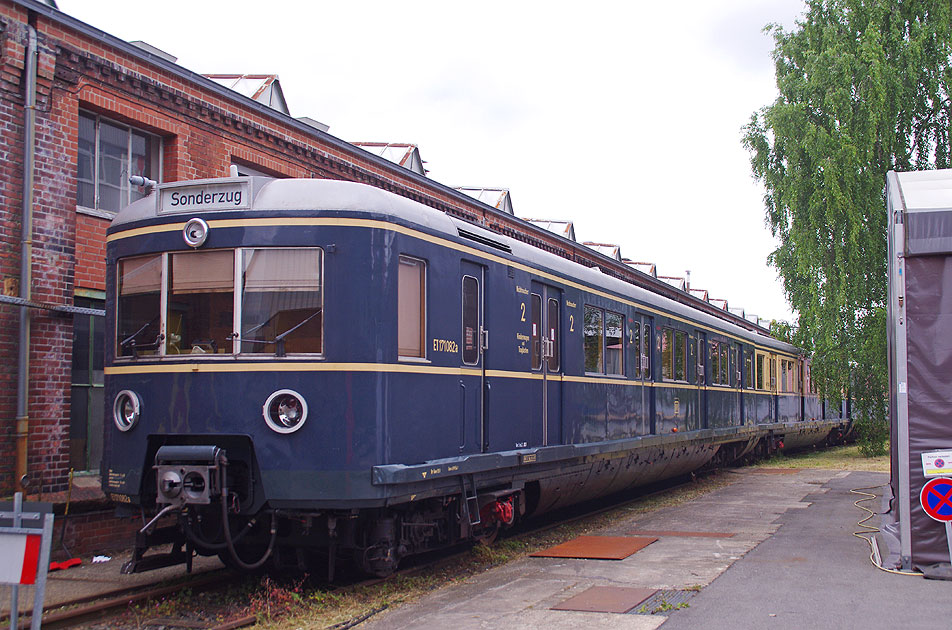 Dieses Foto zeigt Hamburger S-Bahn-Geschichte. Diese S-Bahn-Triebzüge prägten von 1939 bis 2001 das Bild der Hamburger S-Bahn. Am 16. Juni 2014 steht hier der Museumszug ET 171 082 a (471 082) im Bahnbetriebswerk (Bw) Hamburg-Ohlsdorf. Aber auch das Bahnbetriebswerk zeugt von der Hamburger S-Bahn-Geschichte. Das S-Bahn-Betriebswerk ging 1907 beziehungsweise auch schon vor mit Inbetriebnahme der Wechselstrom-S-Bahn in Betrieb. Der 471 082 wurde 1958 gebaut und in Betrieb genommen. Digi Foto: IMGP5820.JPG Digi Fotos: 0249, FP3 Foto: Lars Brüggemann |