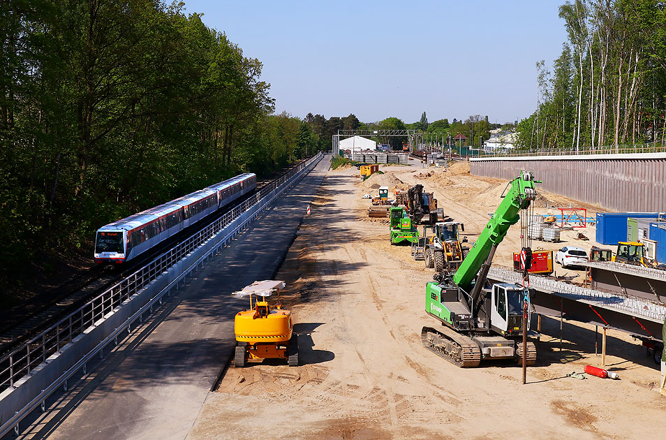 Zwischen den Haltestellen Ohlsdorf und Sengelmannstraße kommen zwei DT4 an der Baustelle für das neue Betriebswerk in Richtung Sengelmannstraße vorbeigefahren. In diesem Betriebswerk sollen zukünftig die Züge für die Linie U5 gewartet werden. Digi Foto: IMG_4438.JPG Digi Fotos 0356 (D12/D5/#+23) Foto: Lars Brüggemann Diese Seite ist ein Teil einer Online-Foto-Sammlung ähnlich einem Bildband, Sie können sich hier von Baureihe zu Baureihe durchklicken. Vielleicht suchen Sie aber Fotos für eine Heimatchronik, ein Fachbuch oder einen Fachartikel? Schreiben Sie mir! Email an Lars Brüggemann: mail@larsbrueggemann.de zurück zur: Startseite |