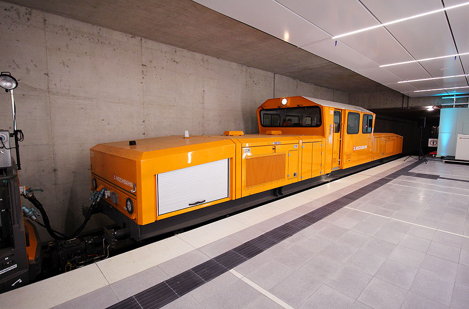 Am 3. Mai 2024 eröffnete die Hamburger Hochbahn AG den neuen zusätzlichen Tunnelbahnhof an der Haltestelle Horner Rennbahn. Für die Beköstigung der Ehrengäste kam die AL 2 Lok 030 mit einer Lore. Auf der Lore war die Beköstigung (das "Catering"). Im Jahr 2023 hatte Gmeinder von den Hochbahn den Auftrag erhalten fünf neue Arbeitsloks zu bauen. Diese Loks beziehen ihren Strom aus der Stromschiene und zum fahren auf stromlosen Abschnitten beziehen die Loks ihren Strom aus Akkus. Digi Foto: IMG_0746.JPG Digi Fotos: 0368, FP10 Foto: Lars Brüggemann |