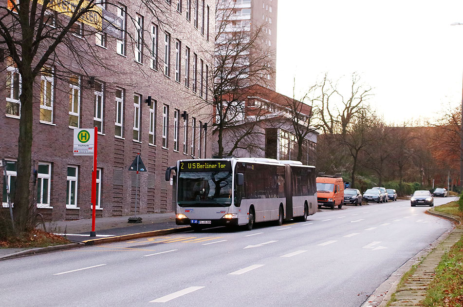 Die Angebotsoffensive: Mit dem Fahrplanwechsel zum 13. Dezember 2020 ging die neue Haltestelle Fischmarkt in der Breiten Staße für die Linie 2 in Betrieb. Hier verlässt der VHH-Bus 1256 als Linie 2 die Haltestelle Fischmarkt in Richtung Bahnhof Altona und Schenefelder Platz. Digi Foto: IMG_7388.JPG Digi Fotos 0327 (D28/D12/+#20) Foto: Lars Brüggemann |