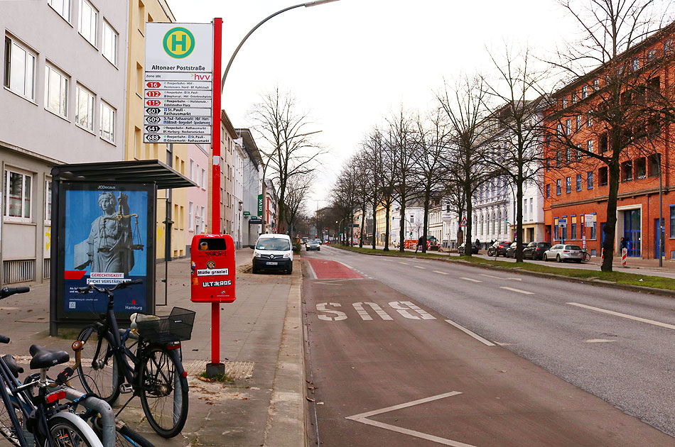 Die Bushaltestelle Altonaer Poststraße in Fahrtrichtung St. Pauli. Hier an der Bushaltestelle in der Ehrenbergstraße gibt es eine große Angebotsvielfalt von Buslinien. Hier halten die Buslinien: 16, 112, 115, 601, 609, 641 und 688. Digi Foto: IMG_4901.JPG Digi Foto 0353 (D10/D2/+#23) Foto: Lars Brüggemann |