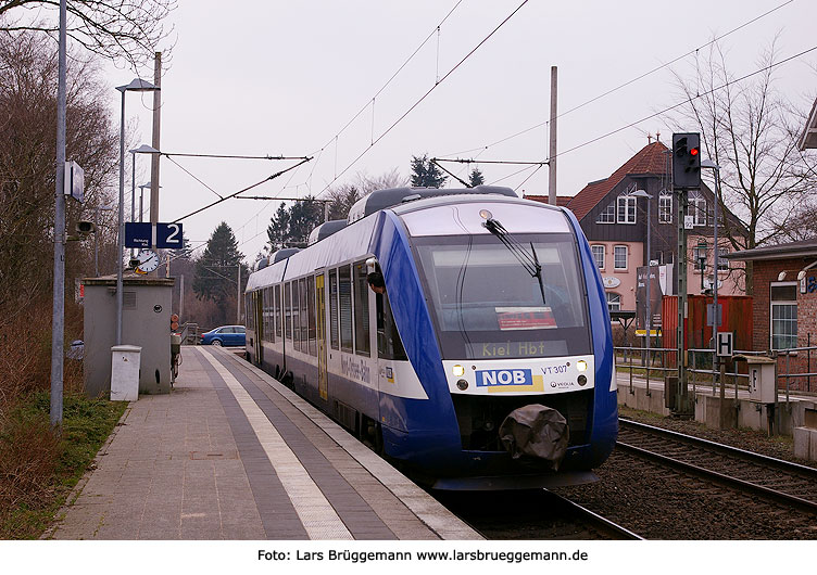 Der NOB-Lint VT 307 als Nahverkehrszug von Neumünster nach Kiel Hbf im Bahnhof Einfeld. Digitalfoto: IMGP0853.JPG Digi Fotos: 0186 (D21/D3/2009) Foto: Lars Brüggemann |