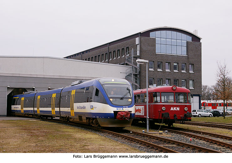 Der NOB-Talent VT 728 im Bw Kaltenkirchen AKN am 31. März 2009, rechts der Uerdinger Schienenbus der AKN. Digitalfoto: IMGP2665.JPG, Digi Fotos: 0186 Foto: Lars Brüggemann |