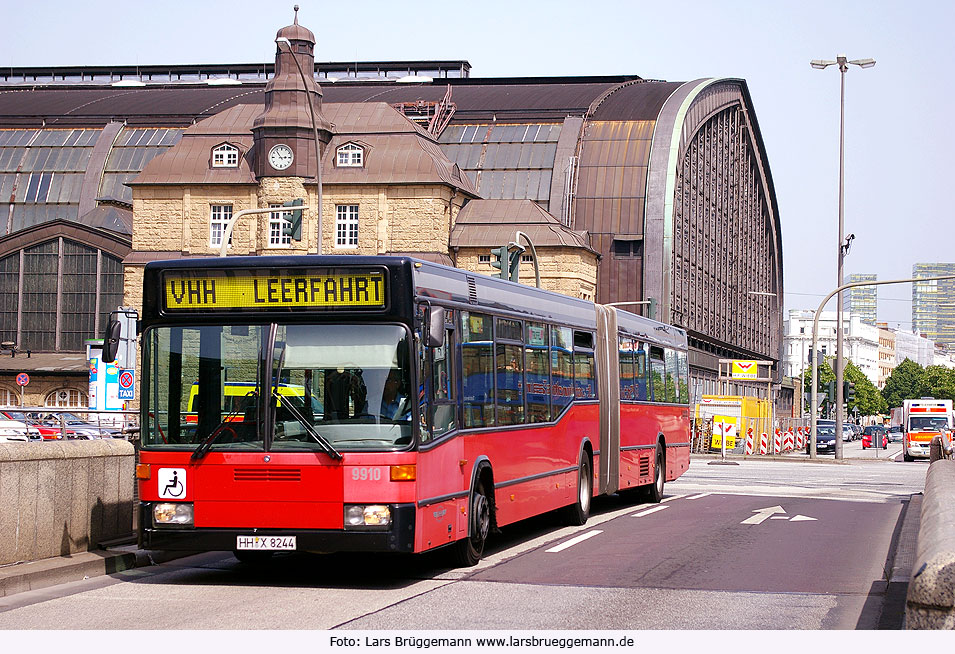 Der VHH-Bus 9910, ein Mercedes O405 GN2, kommt am 30. Mai 2008 als Leerfahrt in die Mönckebergstraße gefahren, im Hintergrund der Hamburger Hauptbahnhof. Digi Foto: IMGP3294.JPG CD Digi Fotos: 0136 Foto: Lars Brüggemann |