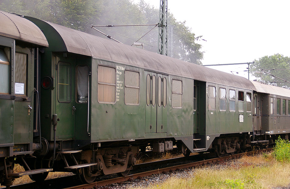 In einem Museumszug nach Niebüll am 17. Juli 2010 ist dieser ehemalige Bundesbahn-Umbauwagen hier im Bahnhof Tornesch zu sehen. Der Wagen ist der 98 290 Mst, ein BPw4yge (50 80 82-12 298-9 BDyg 533), ein Umbauwagen mit Gepäckabteil und 2. Klasse. Digi Foto: IMGP0285.JPG Digi Fotos: 0202 Foto: Lars Brüggemann |