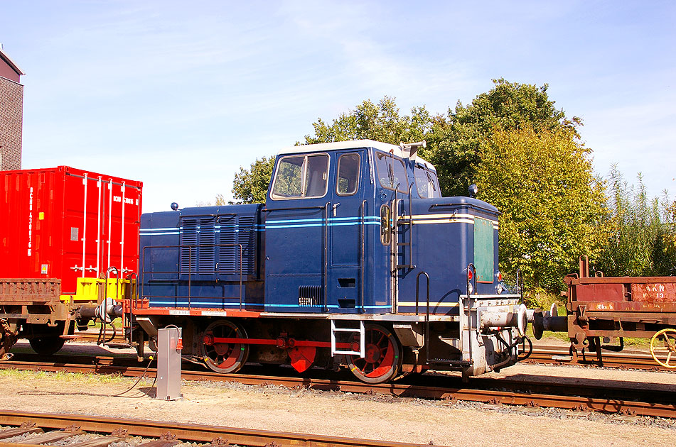 Die Diesellok V 1 der Geesthachter Eisenbahn im Bahnbetriebswerk Geesthacht, aufgenommen am 2. September 2016. Diese Lok wurde am 16. Oktober 1951 von Deutz mit der Fabriknummer 55158 an die Deutsche Bundespost ausgeliefert. Eingesetzt wurde sie von der Oberpostdirektion Freiburg beim Postamt Freiburg. 1966 kam die Lok in den Hamburger Hafen und wurde dort zur Werklok. 1975 hatte man die Lok dann aber wegen einem Hochwasserschaden im Hamburger Hafen außer Dienst gestellt. Am 6. Dezember 1977 ging die Lok zur Arbeitsgemeinschaft Geesthachter Eisenbahn e.V. und wurde dort zur V 1. Digi Foto: IMG_8214.JPG Digi Fotos: 0277 Foto: Lars Brüggemann Interner Vermerk: Dieses Foto ist unter anderem Dateinamen auch Online |