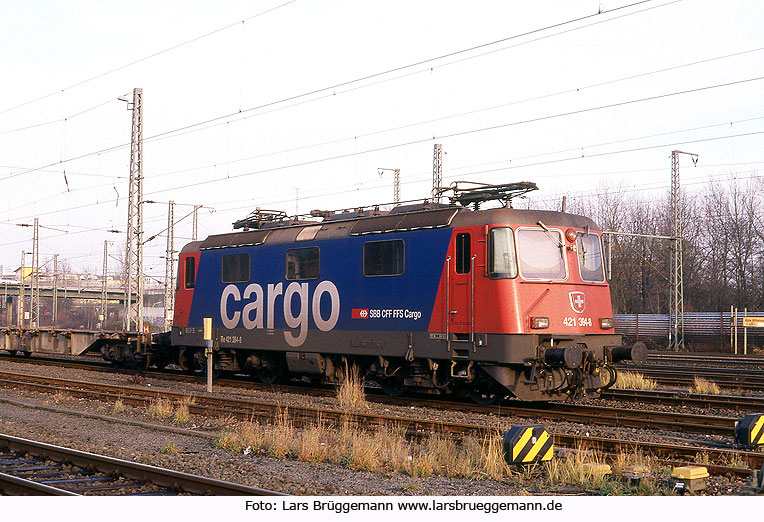 Die SBB E-Lok 421 394-8 im Güterbahnhof Hamburg-Wilhelmsburg im Dezember 2006. Foto: Lars Brüggemann Dia: F22A-DF151 FP3 |
