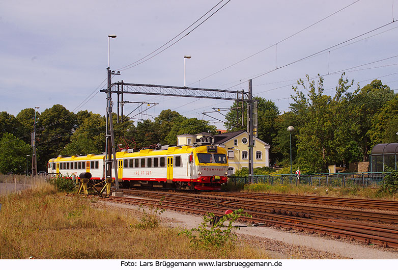Der Kustpilen-Triebwagen Carl Boberg 1381 ein Y2-Triebwagen im Bahnhof (Järnvägsstation) Kalmar als Eilzug nach Linköpping. Digi Fotos: 0263 Digi Foto: IMGP8360.JPG (D20/D8/#+15) Foto: Lars Brüggemann |