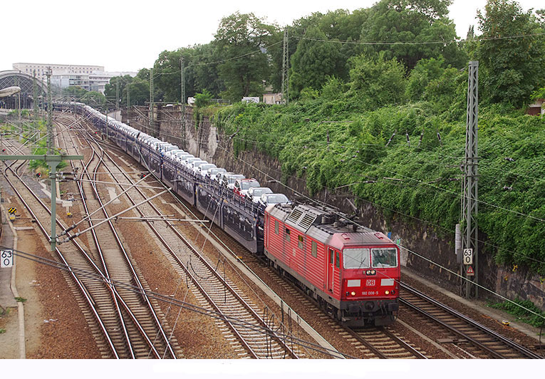 Die180 003 kommt mit einem Rola (rollende Landstraße) Zug aus Tschechien und hinten links stehen noch die 142 220-0 und KEG-Lok 013 am 8. Mai 2002 in den Bahnhof und Güterbahnhof Dresden-Friedrichstadt eingefahren. Die Baureihe 180 wird von Modellbahnern aber auch Modellbahnherstellern auch gerne BR 180 genannt und gefühlt gehört dort die Abkürzung BR zur Baureihennummer. Dia 5182 Foto CD 010, Foto CD Zusammenfassung FP1 Foto: Lars Brüggemann Interner Vermerk: Dieses Foto ist noch unter einem anderen Dateinamen online. |