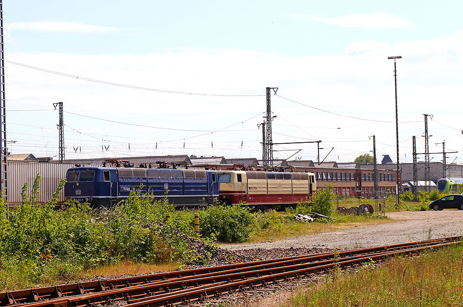 Die SEL (Schlünß Eisenbahn Logistik) 181 204-9 mit der 181 215-5 im Güterbahnhof Neumünster Im Hintergrund ist das AW Neumünster zu sehen. Digi Foto: IMG_1264.JPG Digi Fotos: 0368, FP10 (D18/D5/#+24) Foto: Lars Brüggemann |