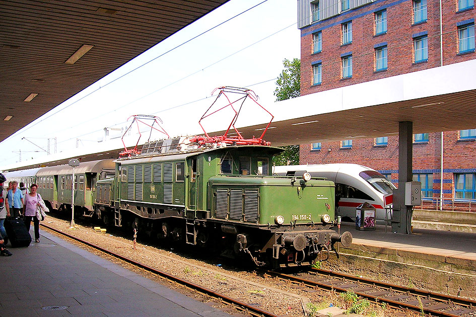 Am 10. September 2005 brachte die 194 158-2 einen Sonderzug nach Hamburg-Altona. Hier steht die Lok im Bahnhof Hamburg-Altona, im Hintergrund ein ICE. Digi Foto: DSCN3913.JPG CD Digi Fotos: 0004 Foto: Lars Brüggemann Interner Vermerk: Dieses Foto ist noch unter einem anderen Dateinamen online |
