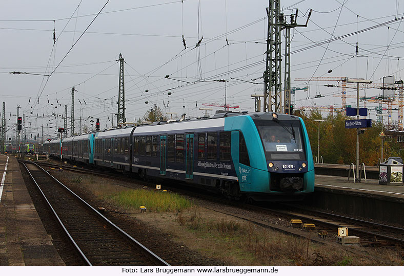 Der NOB-Lint-Triebwagen 622 166 steht als Eilzug nach Westerland auf Sylt im Bahnhof Hamburg-Altona zur planmäßigen Abfahrt um 16.40 Uhr am 15. November 2016 bereit. Bedingt durch den Ausfall der NOB-Marschbahnwagen fährt hier wie auf dem Foto zu sehen dieser einzelne Lint-Triebwagen statt sechs Married-Pair-Wagen. Digitalfoto: IMG_7157.JPG Digi Fotos: 0278 Foto: Lars Brüggemann |