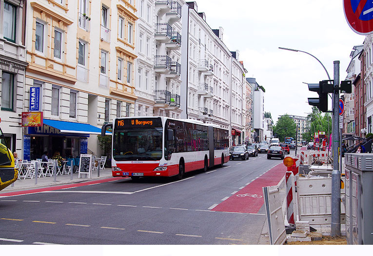 Am 24. Mai 2015 hält ein Hochbahn-Gelenkbus an der Haltestelle Graumannsweg als Linie 6 nach U-Bahn Borgweg. Die Straßenbahn Linien 1 und 14 wurden hier am 22. Mai 1977 eingestellt und durch Busse ersetzt. Digitalfoto: IMG_4719.JPG Digi Fotos: 0289 Foto: Lars Brüggemann |