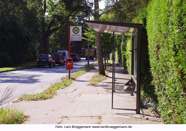 Die Bushaltestelle Röpers Weide der Metrobuslinie 1, vormals Linie 187 in Hamburg in Fahrtrichtung Bahnhof Othmarschen, aufgenommen am 8. September 2014. Digi Foto: IMGP4261.JPG Digi Fotos: 0252 Foto: Lars Brüggemann |