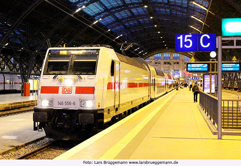 Die 146 556-6 mit einem Doppelstock-IC nach Hannover Hbf im Leipziger Hbf. Digi Foto: IMGP2651.JPG Digi Fotos: 0271 (D24/D4/D2016) Foto: Lars Brüggemann |