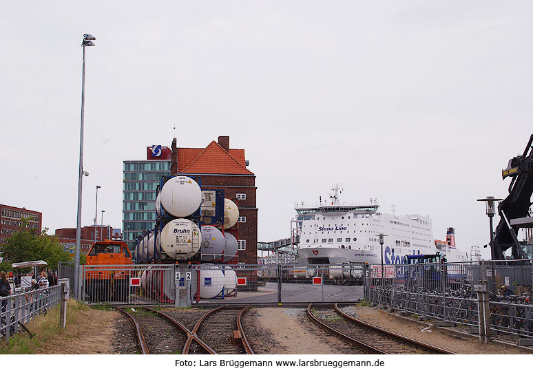 Ein Stena-Line-Schiff trifft am Kieler Hafen vor dem Hauptbahnhof in Kiel eine Northrail-Lok. Digitalfoto: IMGP6272.JPG Digi Fotos: 0213 (D22/D6/D2011) Foto: Lars Brüggemann |